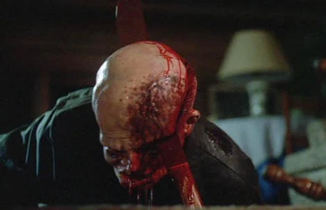 - Shack: Flaming machete thrown through back.
